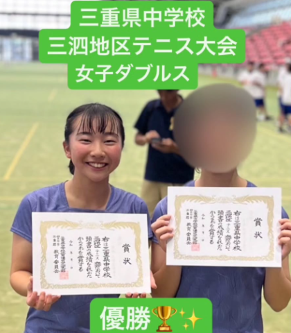 ジュニアトーナメントクラス所属の本保 咲選手が「三重県中学校三泗地区テニス大会」女子ダブルスにおいて見事、優勝を果たしました🎉🎊🌟😆おめでとう🎉👏💯🎉🎊よく頑張りました👏👏😆✨本保選手は最近ネットプレーの回数がどんどん増えてきていたので、今...