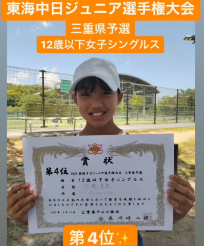先日おこなわれた「東海中日ジュニアテニス選手権大会12歳以下女子シングルス」の部で、オリンピアジュニアテニストーナメントクラスに所属の佐藤夏果選手が見事第4位に入賞しました❗この入賞により、佐藤選手は2度目の東海大会出場が決定しました‼️お...