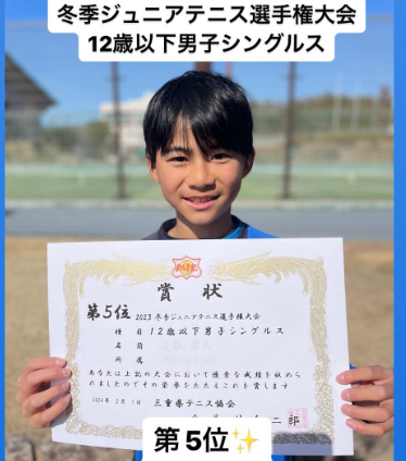 2023冬季ジュニアテニス選手権大会にてオリンピアテニススクールトーナメントクラスの選手が素晴らしい成績を残してくれました✨12歳以下男子シングルス第5位✨ 近藤碧人選手近藤選手はこの大会で東海大会の出場が決定しました‼️🎉近藤選手おめでと...