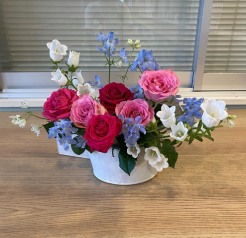 オリンピアテニスコーチの佐藤です😊今回はバラをメインに生けてみました🌹花材・バラ・デルフィニウム・カンパニュラカンパニュラは風鈴のような形をしているところから、風鈴草ともいわれています🎐とても可愛い形で癒されます☺️テニスドームのギャラリー...
